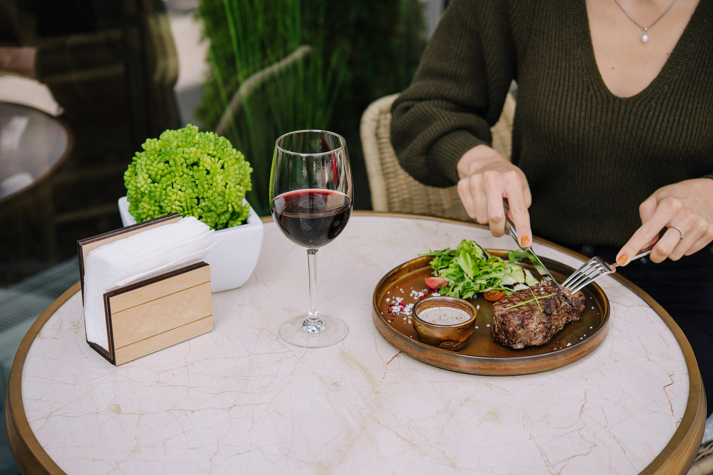 Very big steak. Seasoned well and put on grill. Lots of flavor and juicy